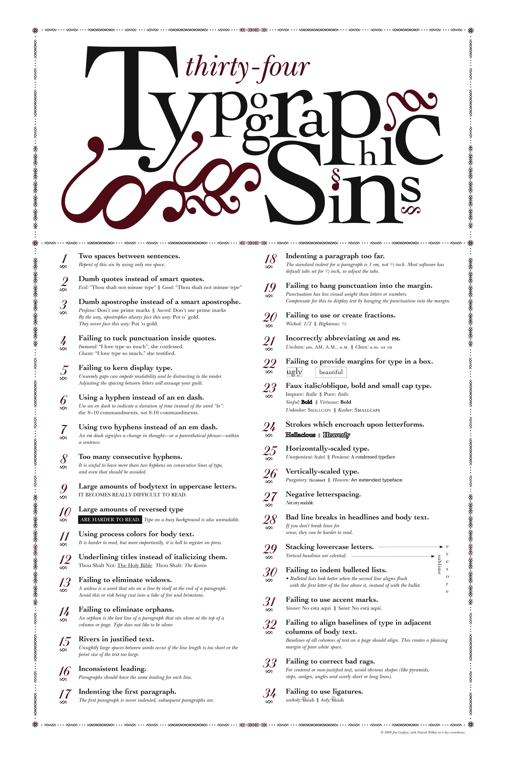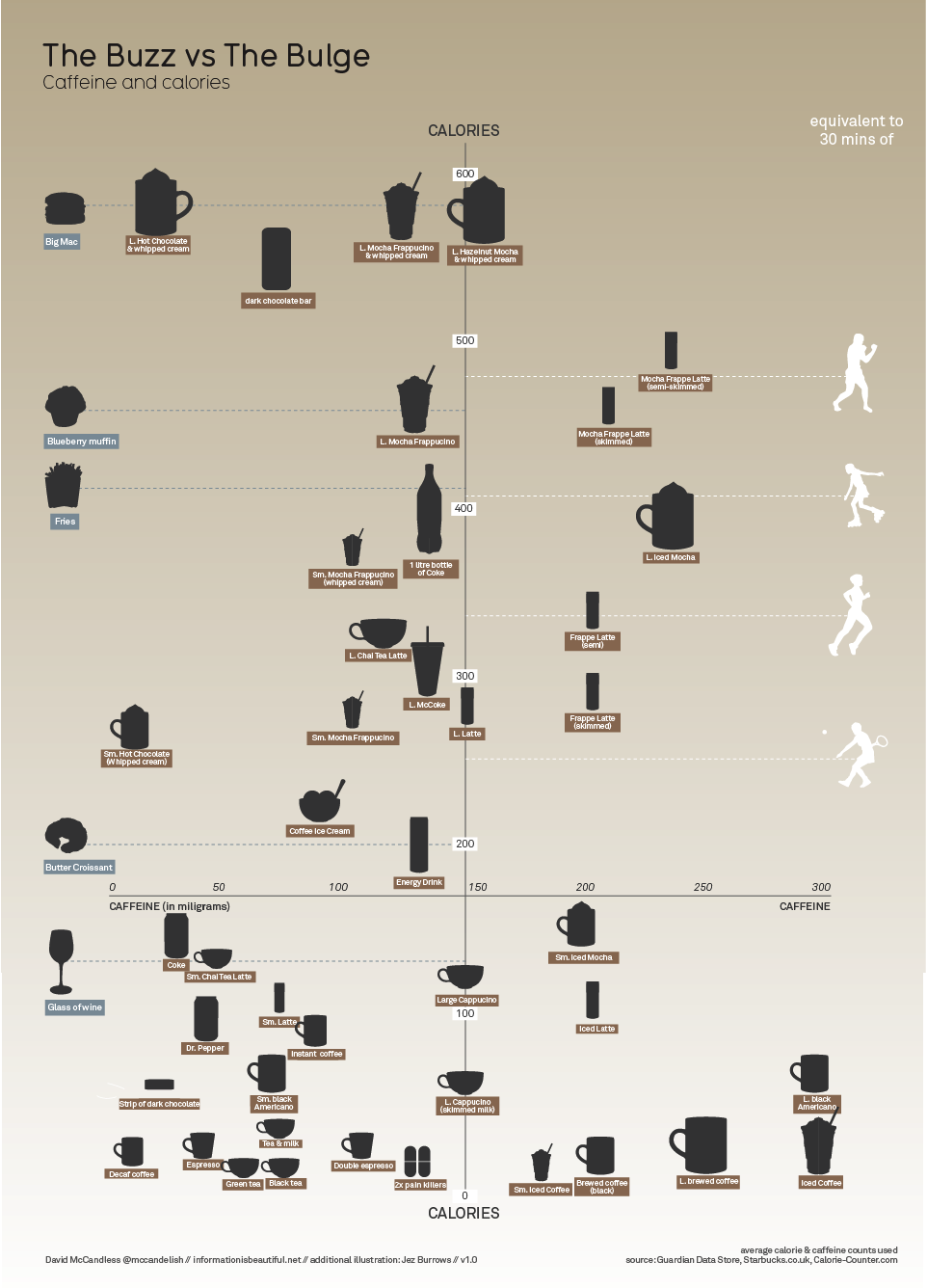 Infographics have become a popular way of using good design to compress large amounts of information into a single image file which can be easily distributed electronically, online or off. Here are some examples:
